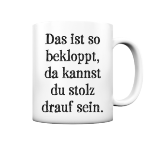 Tasse mit Spruch: Das ist so bekloppt, da kannst du stolz drauf sein.
