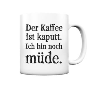 Tasse mit Spruch: Der Kaffee ist kaputt. Ich bin noch müde.