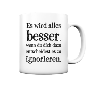 Tasse mit Spruch: Es wird alles besser, wenn du dich dazu entscheidest es zu ignorieren.