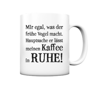 Tasse mit Spruch: Mir egal, was der frühe Vogel macht. Hauptsache er lässt meinen Kaffee in Ruhe!