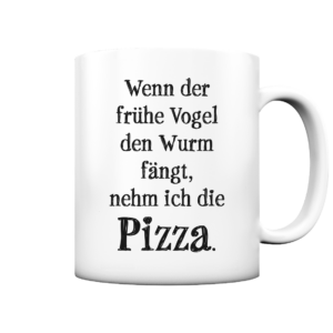 Tasse mit Spruch: Wenn der frühe Vogel den Wurm fängt, nehm ich die Pizza.
