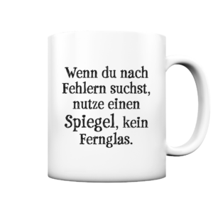 Tasse mit Spruch: Wenn du nach Fehlern suchst, nutze einen Spiegel, kein Fernglas.